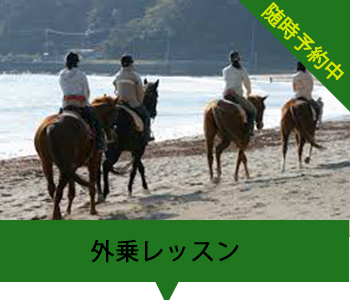 馬は体こそ大きいですが、とても優しく臆病な動物です 日頃の溜まったストレスも馬の優しい目を見れば自然と癒されるでしょう。 馬に乗ると目線が高くなり、自分より何倍も大きい動物である馬を操作して自分の思うように動かすのですから満足感によって自分に自信が持てるようになるという効果もあります。 また、当クラブは外乗といって馬場の外に出て森や草原、または海岸で騎乗できるところもあり、大自然の中での乗馬は非常に解放感があり気持ちのいいものです。 このように乗馬にはセラピーとしての側面もあります