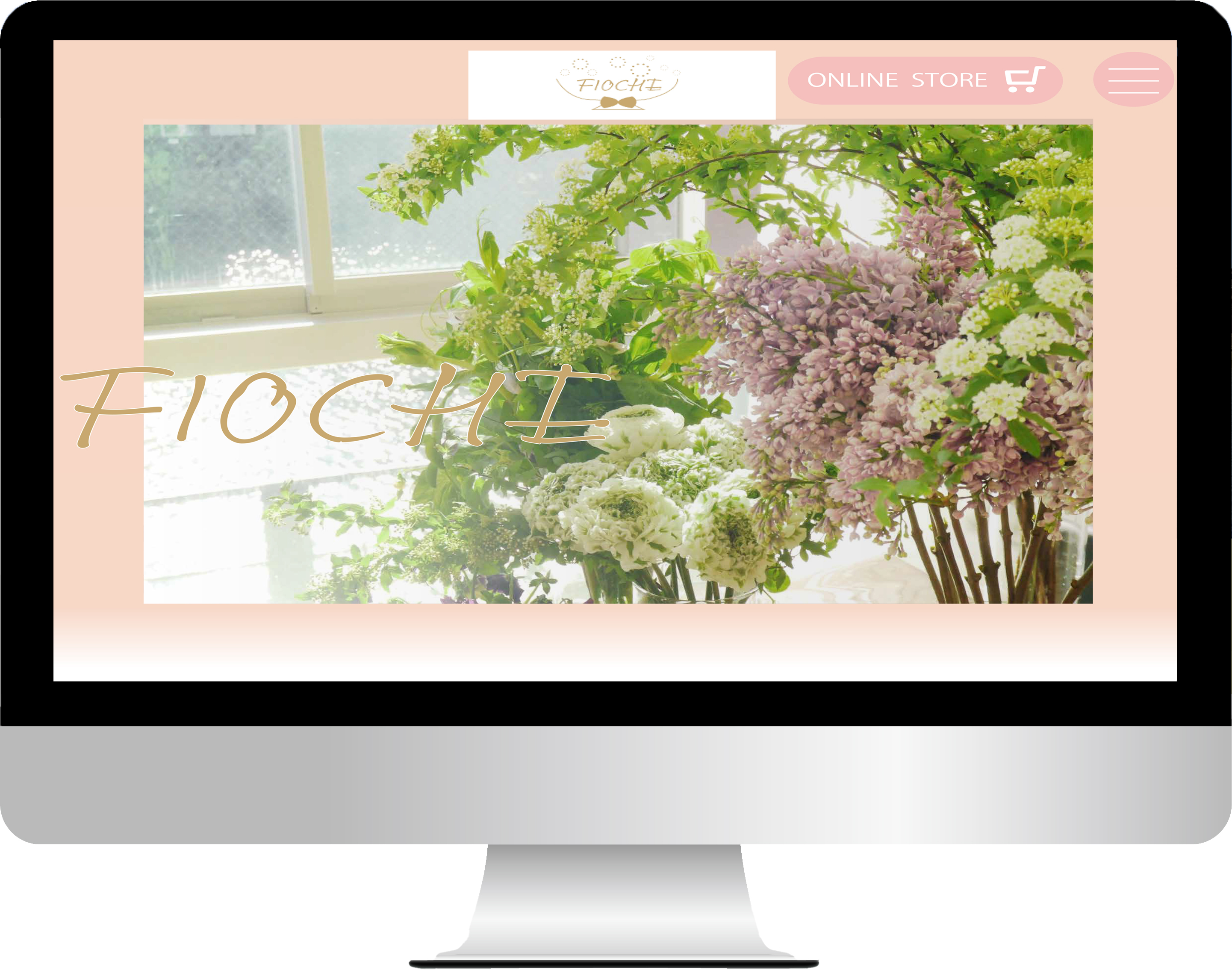 春をテーマに花にあったピンクや特別感を出せるようにゴールドをアクセントカラーとして配色しました。また、オンラインショップへのユーザーを導けるようオンラインショップのリンクをヘッダー部分に設置、敢えて大きく設置するなど工夫しました。